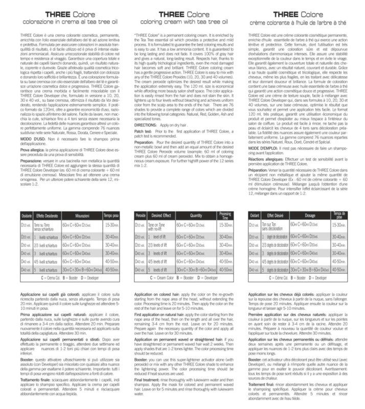 Faipa Three3 Colore is een permanente haarkleuring van Faipa Roma. De verf is verrijkt met tea tree olie, wat het haar beschermd. Het is een uitstekende haarverf met een laag ammnoiak gehalte. De rode, koper en violettinten hebben een extra lange houdbaarheid. De verf dekt 100% op grijze haren en geeft een langdurig mooi resultaat. Door hoge kwalitatieve ingrediënten wordt zelfs het beschadigde haar na het verven zacht en mooi.